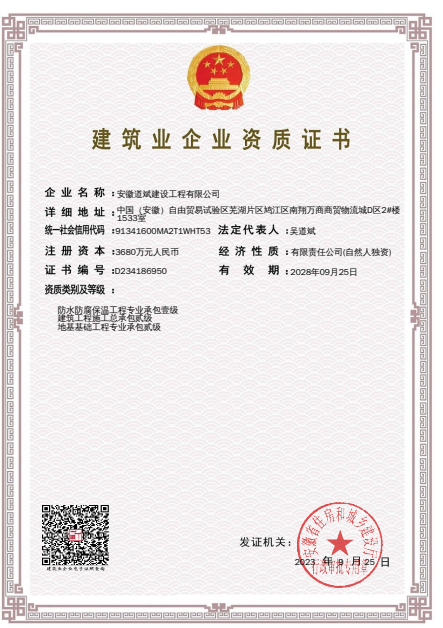 安徽道斌建設工程有限公司 版權所有 免責聲明 皖ICP備2021012659號-1 營業執照